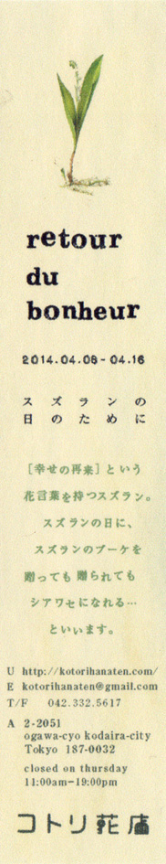 2014年4月8日(火)〜16日(水)[※木曜定休]